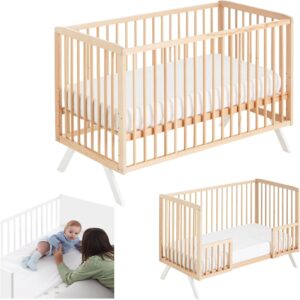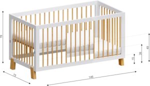 La cuna evolutiva Koala está diseñada para acompañar al bebé desde el nacimiento hasta los 4 años, con kit de colecho incluido y 5 alturas ajustables. Fabricada en madera de haya natural con pintura no tóxica, garantiza seguridad y durabilidad.